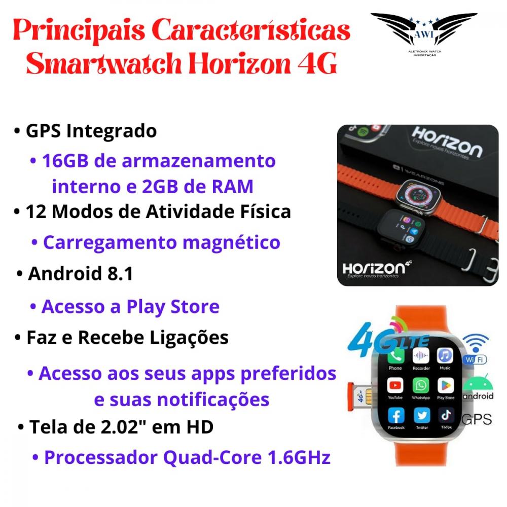 Smartwatch Horizon com sistema Android e 4g | 2gb De Ram E 16gb