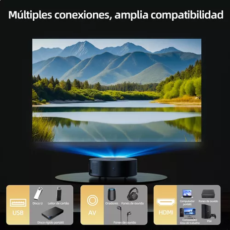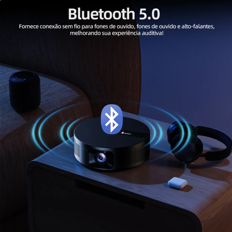 Tecnologia WiFi 6 e Bluetooth 5.0 :Utilizamos a mais recente tecnologia WiFi 5.8G+2.4G neste projetor android Bluetooth, com uma velocidade de transmissão pelo menos 30% mais rápida do que outros retroprojetor portátil 4k. Suporta tecnologia Bluetooth 5.0 para garantir conexão estável com dispositivos de áudio, reduzindo o consumo de energia e prolongando a vida útil da bateria do dispositivo.