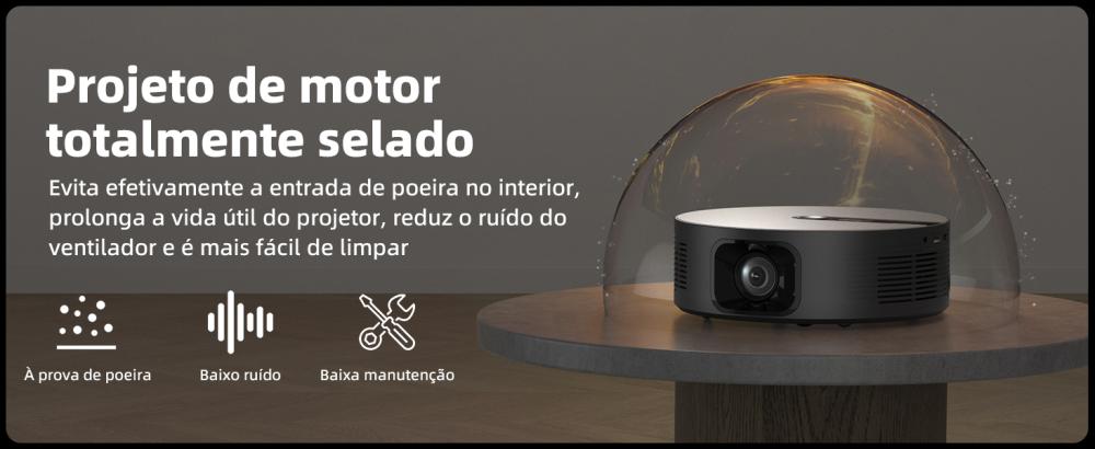 Design de motor selado - Este projetor BETTDOW apresenta um design fechado que efetivamente impede a entrada de poeira no interior e estende a vida útil do projetor; ele também reduz o ruído do ventilador para fornecer uma experiência de visualização mais silenciosa. O design fechado facilita a limpeza e a manutenção, permitindo que os usuários substituam facilmente a lâmpada ou o filtro.