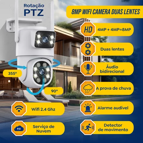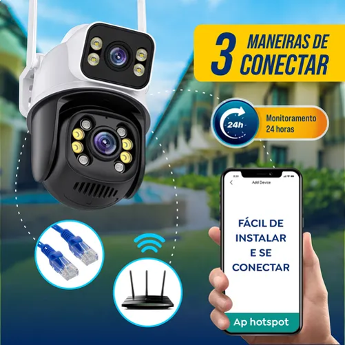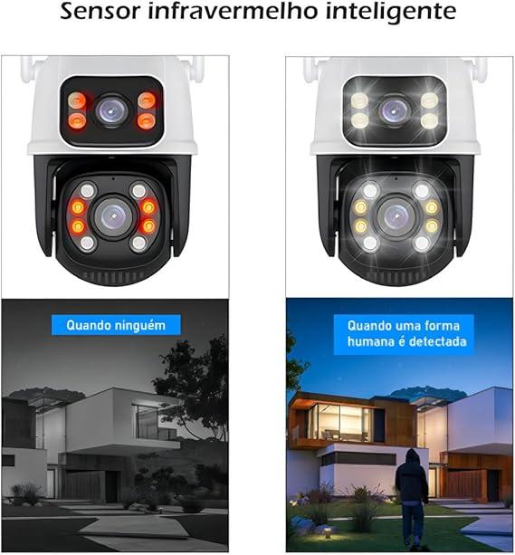 **Dupla Lente, Dupla Tela - Veja completamente tudo: Com lentes 3.6mm + 6mm, esta câmera oferece uma visão independente em duas telas separadas, proporcionando uma vigilância abrangente e detalhada.